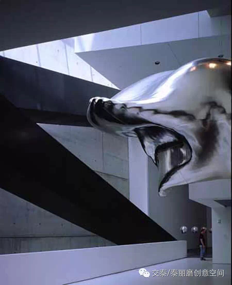 与一般的楼梯设计不用,这里楼梯末端都是采用很狭窄的出入口,这样可以增强人们探索一个不可预见的空间的欲望,也使参观者总是有新鲜感涌入心头。加上铝制球和海豚的牵引,你想不进来都难。