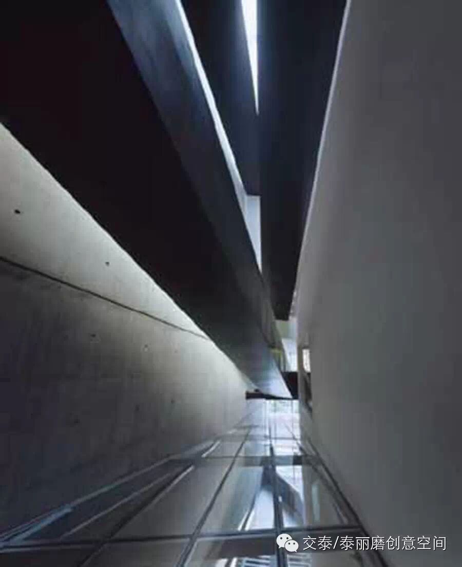 设计师为了给参观者创造新鲜感和探索欲望,巧妙在走道的末端设计细小的出入口,加上混凝墙壁的搭配和缝隙散光的点缀,顿时给游客一种穿过悬崖峭壁去寻求另一片天地的感觉。