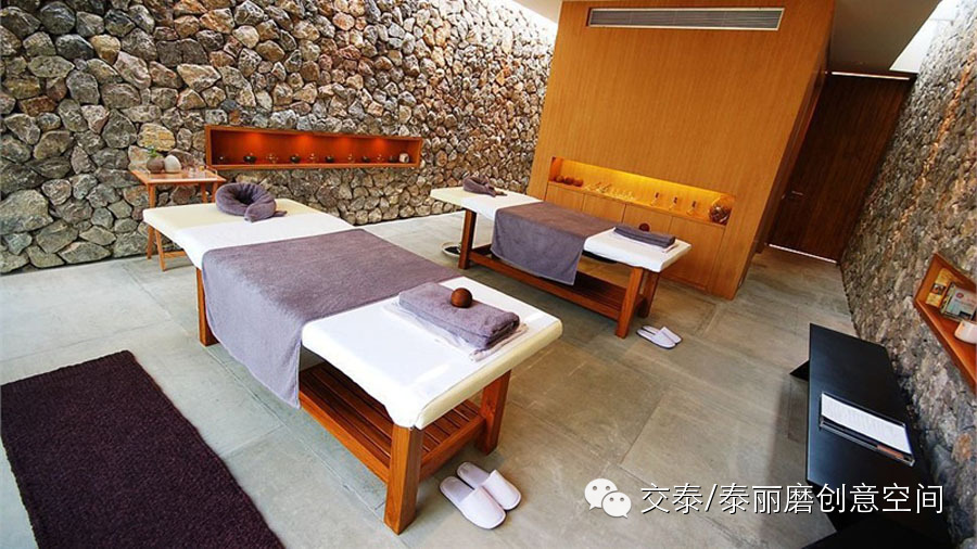 泰国华欣X2奎布里度假村,大部分建筑的墙壁都由天然的石块砌成,与周围原始海滩景象融为一体。不规则的石块墙甚至延伸到室内,自然的主题保持着宁静和原始。